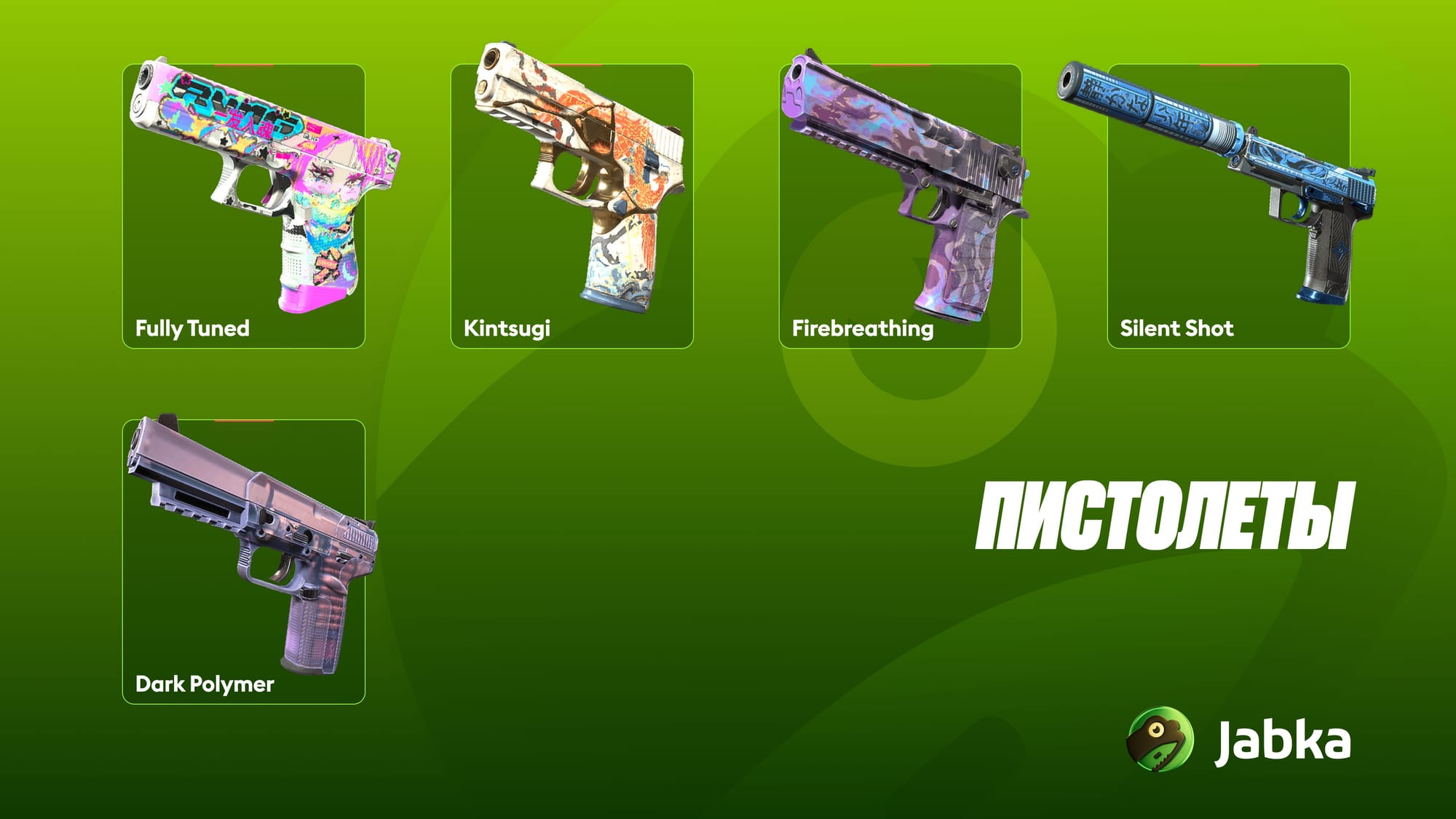 - Glock-18 | Fully Tuned — один из самых ярких пистолетов коллекции с насыщенной цветовой палитрой и сложным графическим рисунком