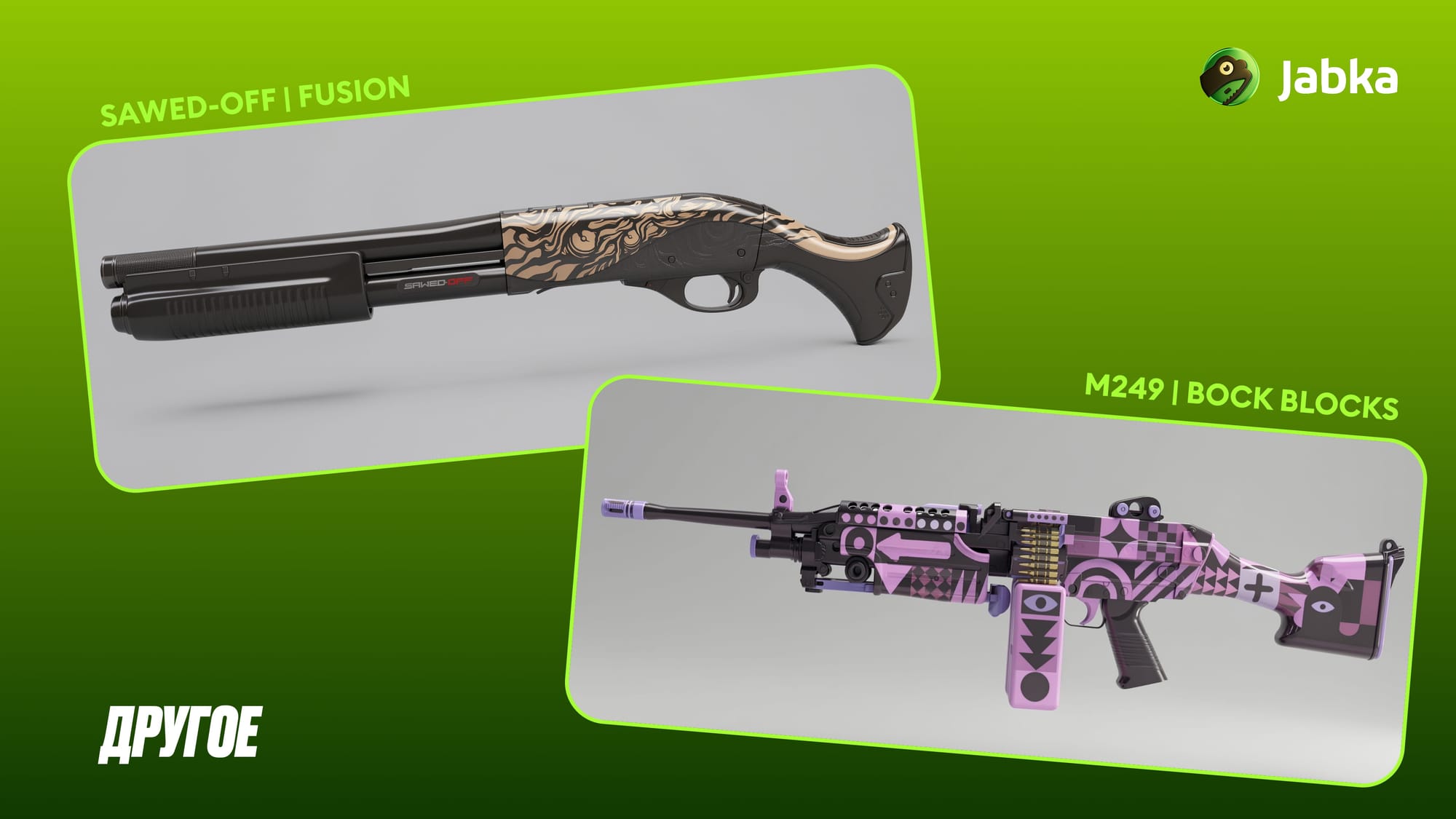 - Sawed-Off | Fusion — яркий дробовик с необычным художественным рисунком и насыщенными цветами