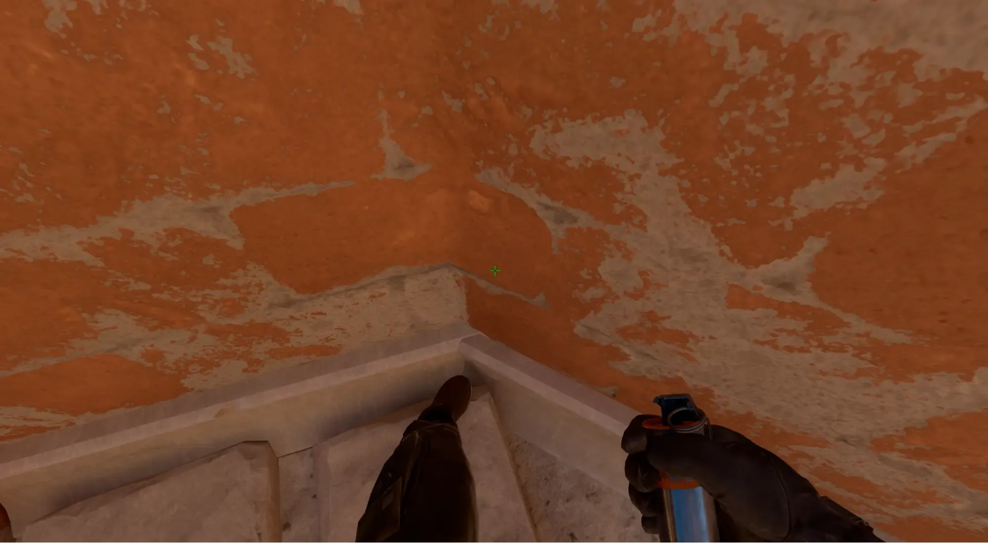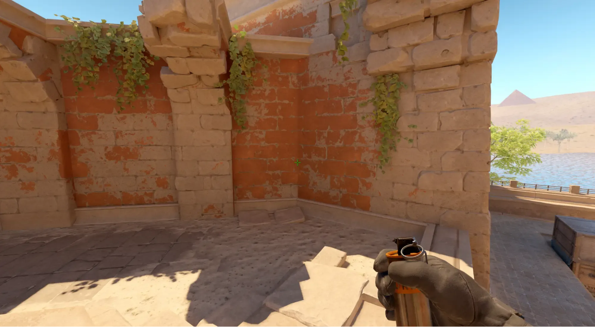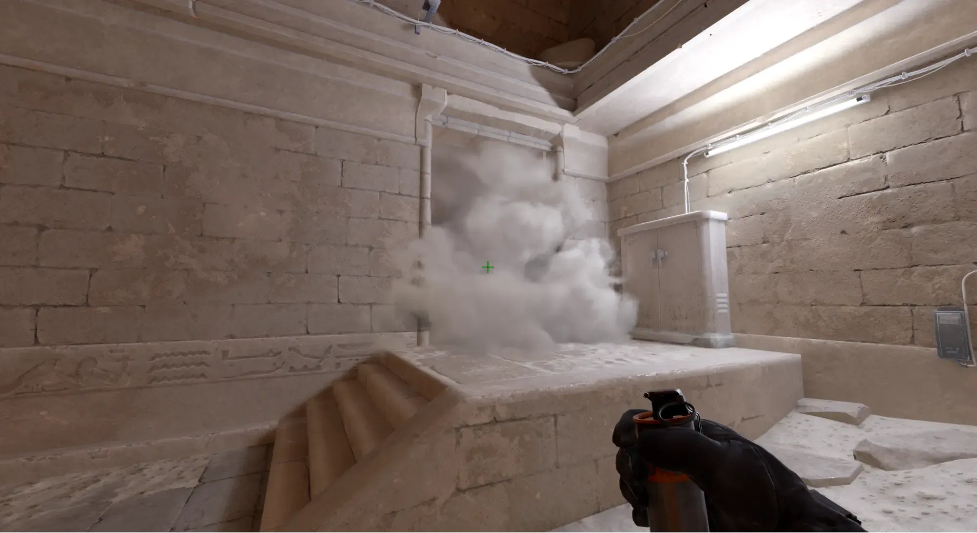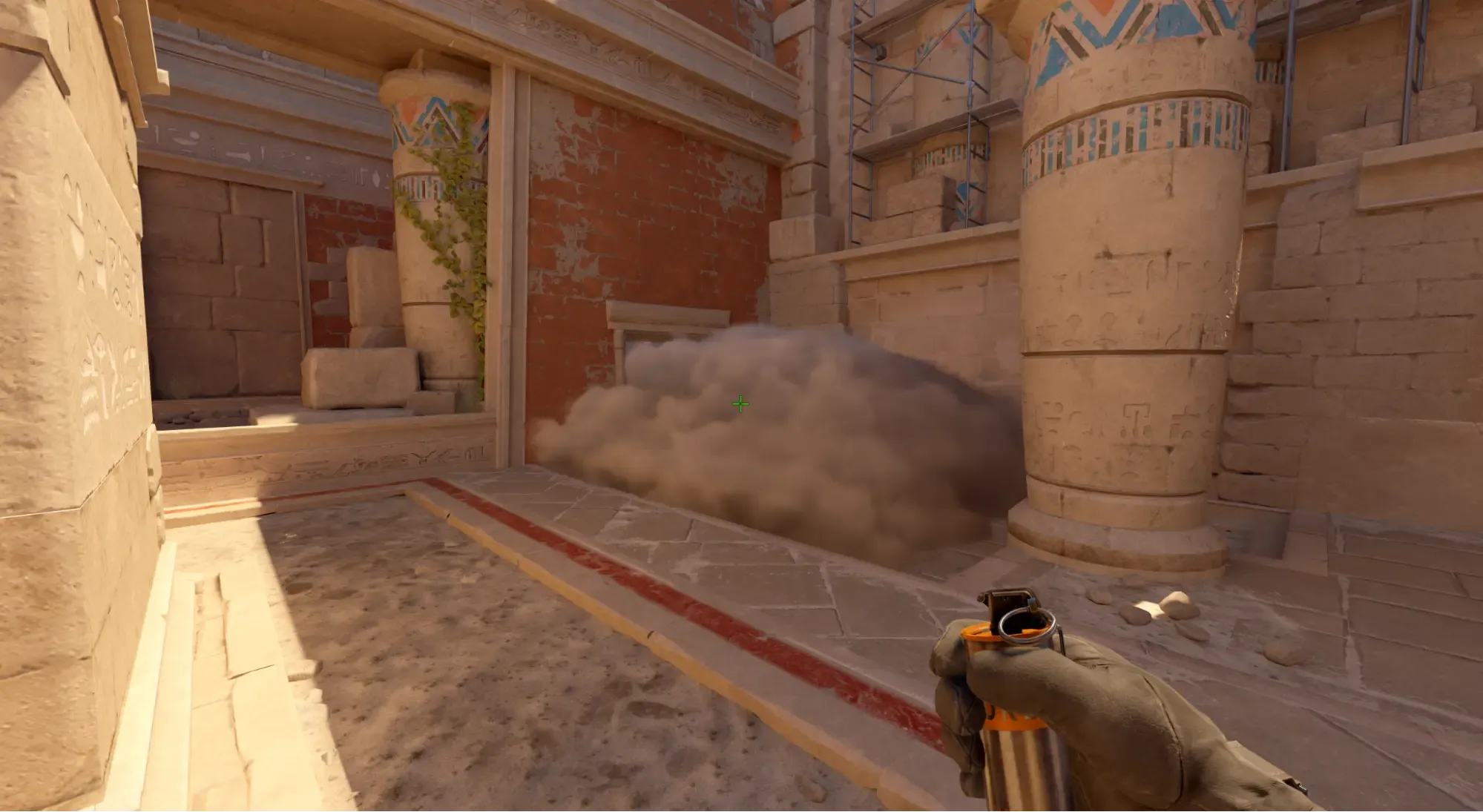 - Выполнить бросок с помощью ЛКМ и смок падает возле колонны