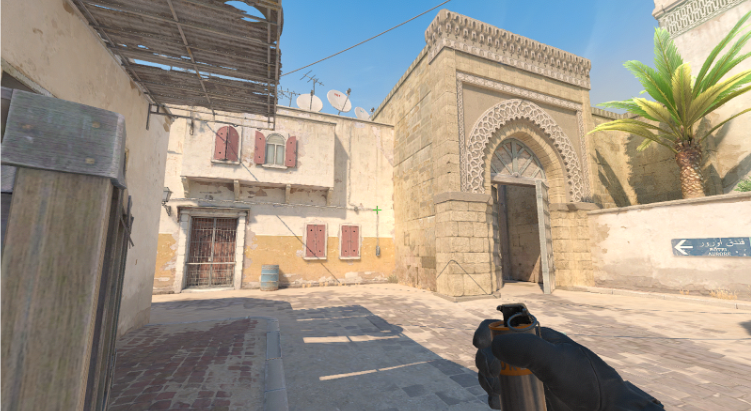 Целимся как показано на фото и бросаем смок с jumpthrow. Для более точного выполнения рекомендуем наводится вверх по линии этого провода: