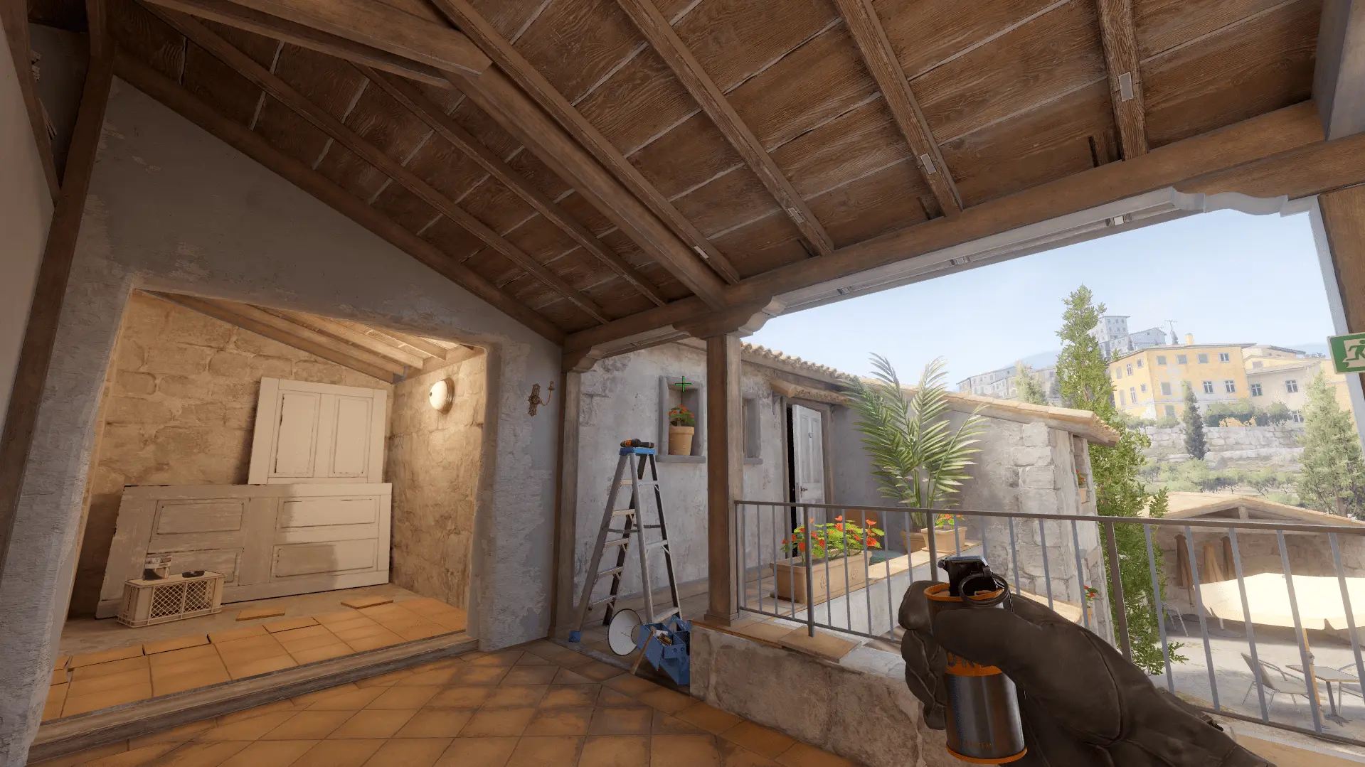 - Прицел поставте на верхнюю часть "рамочки" в котором стоит цветочек и кидайте смок