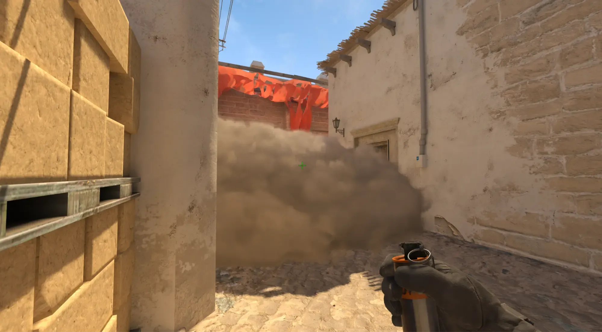 - И выполнить jumpthrow. Смок падает, закрывая видимость защитнику, который стоит на шорту