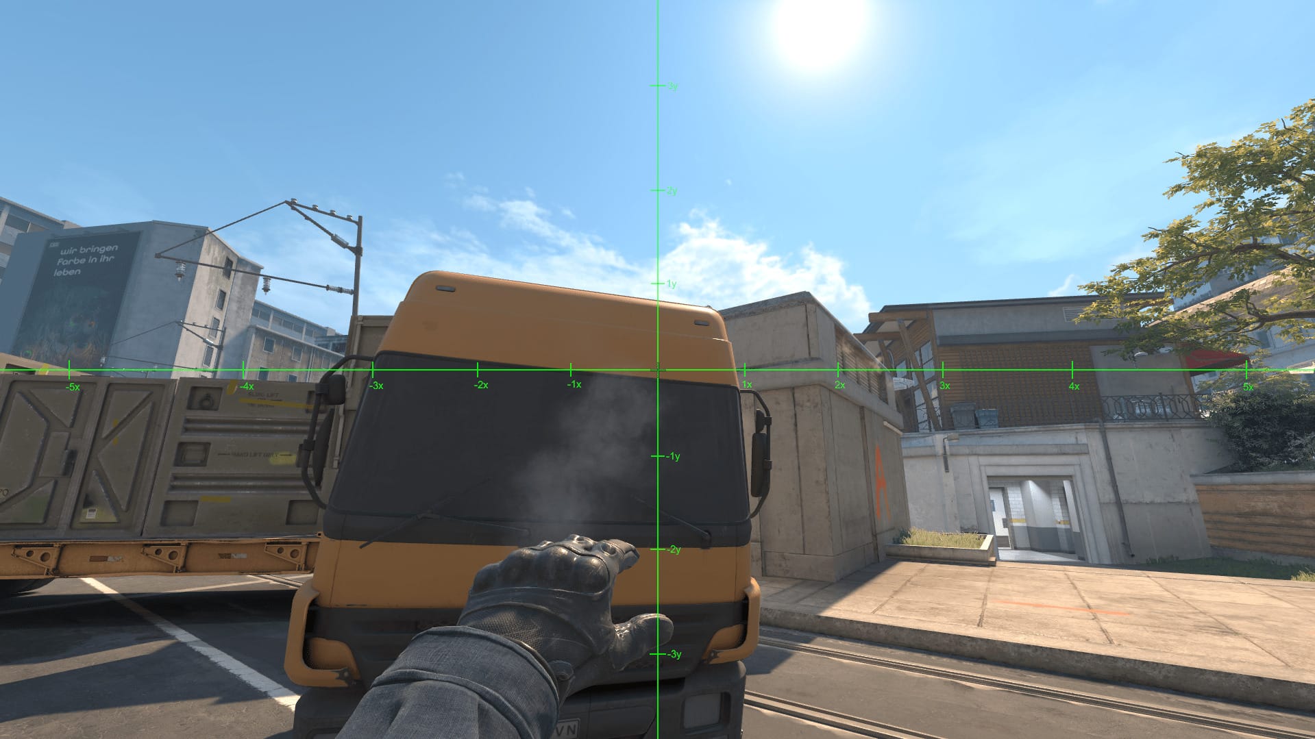 - Отпускаем дым только когда цент вашего прицела дошел до окна на фуре с прыжком