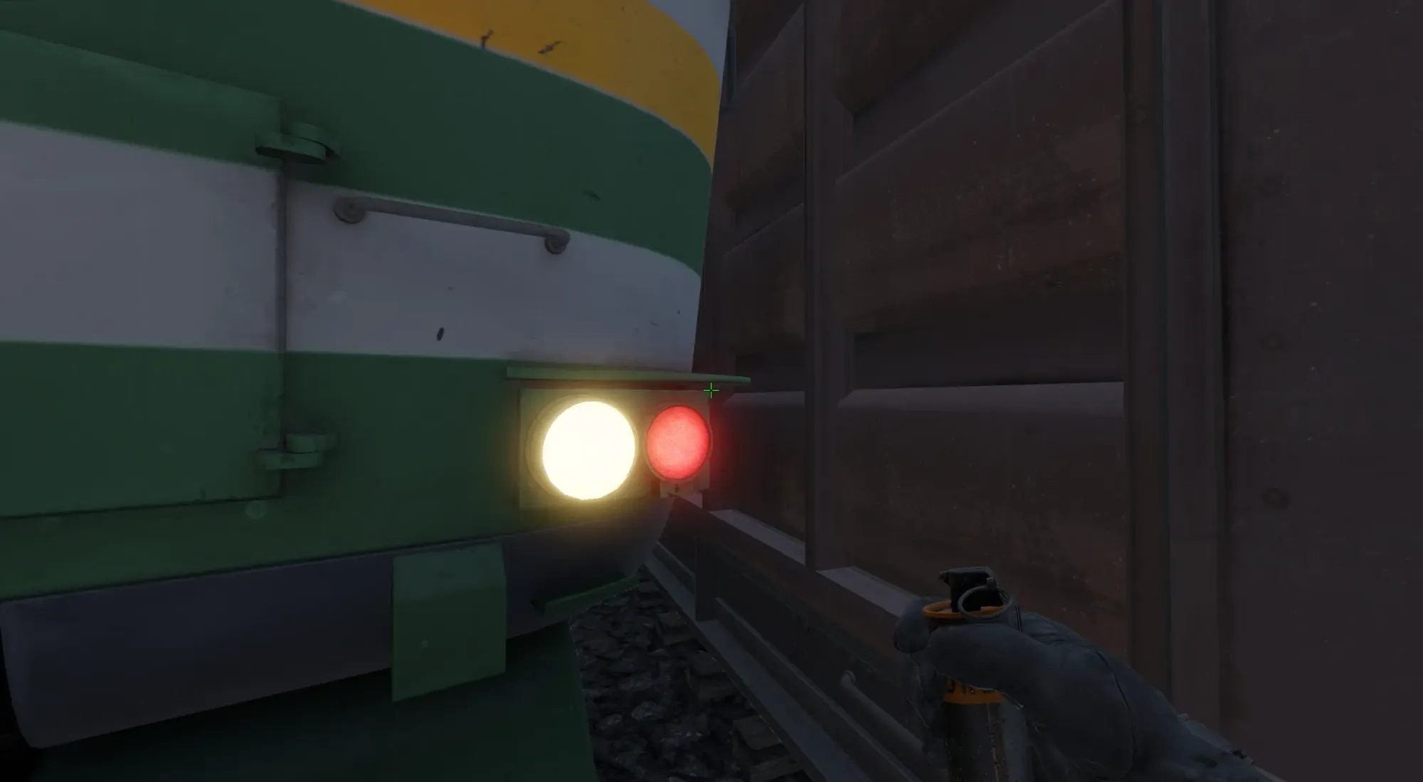 - Встаем в угол между поездами
