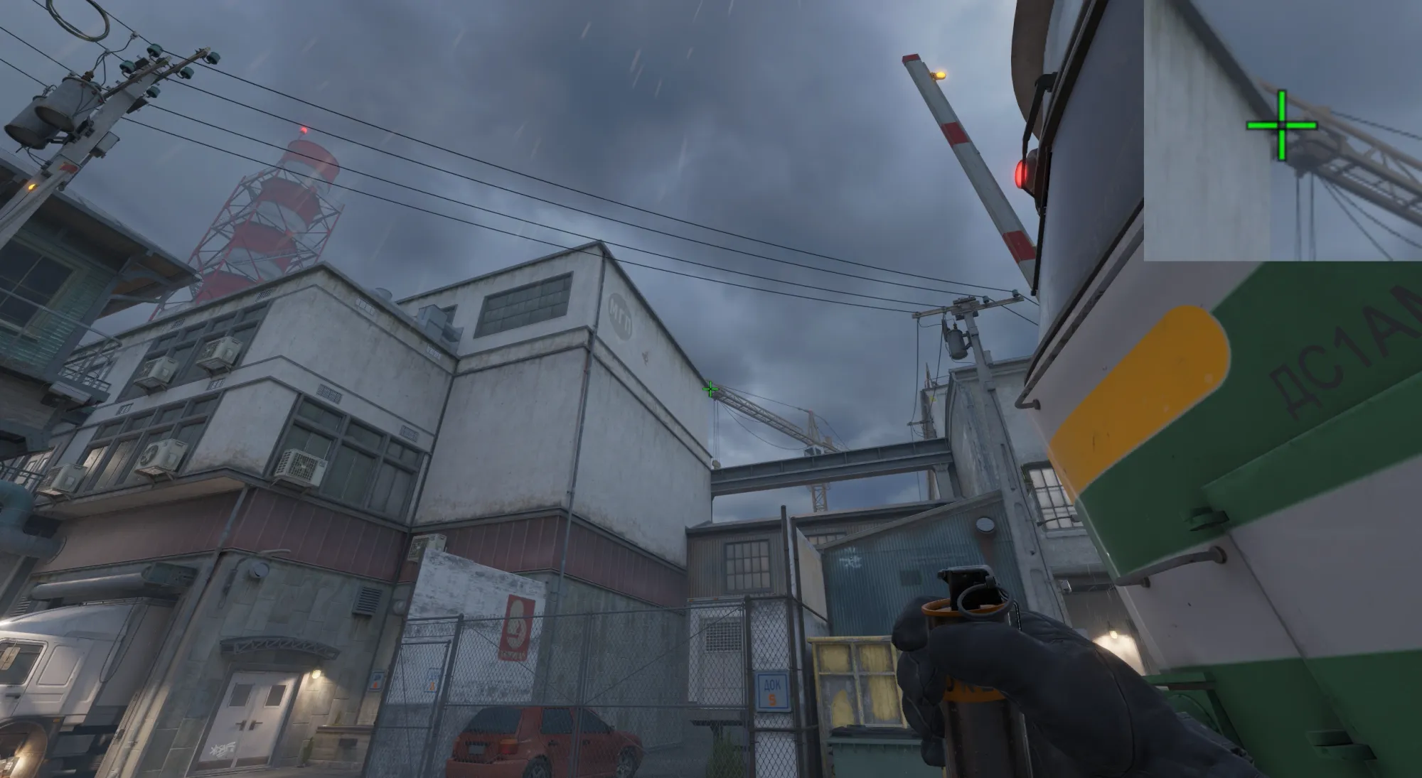 - Наводим прицел на угол здания